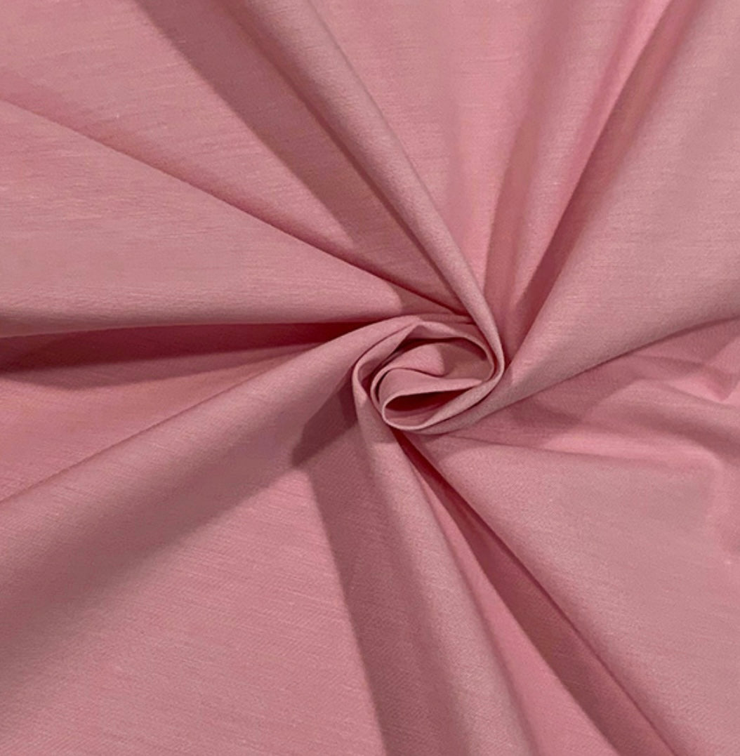 Plain pale pink 100% cotton, wash at 40 degrees and no not tumble dry.