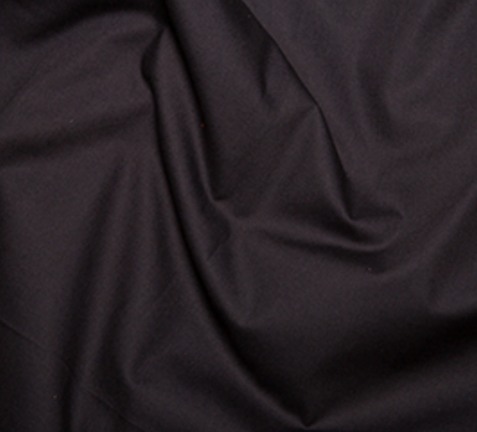 Plain black 100% cotton, wash at 30 degrees and no not tumble dry.