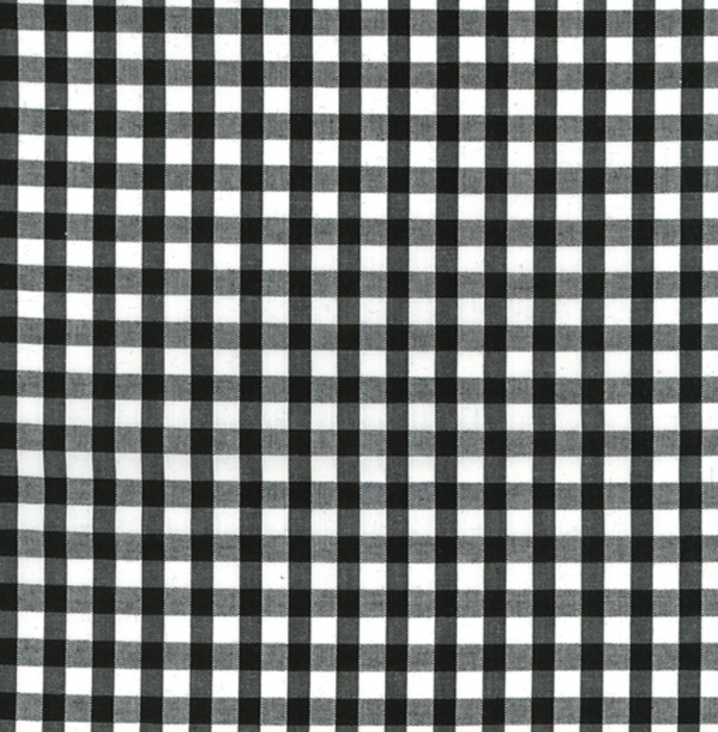 Medium size black check gingham is 65% cotton 35% polyester, wash at 30 degrees and do not tumble dry.