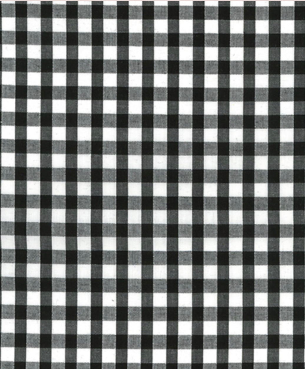 Medium size black check gingham is 65% cotton 35% polyester, wash at 30 degrees and do not tumble dry.