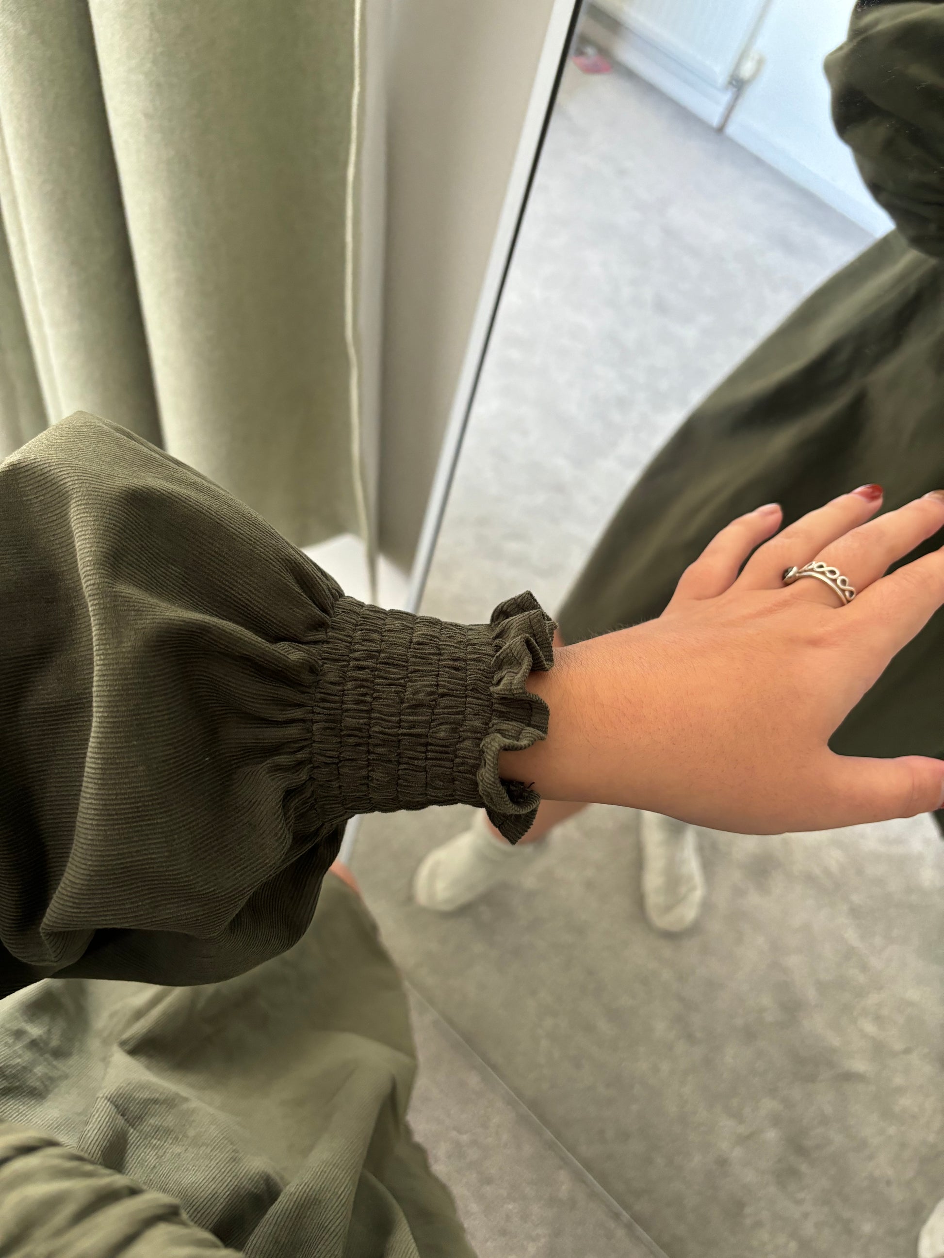 This dress is perfect for going into colder months, it has a flattering slash neckline that's elasticated. also has 7 rows of elastic making it super screechy and flattering on every shape. This dress has long sleeve with an elasticated cuff. This dress also has pockets because every dress is just better with pockets!